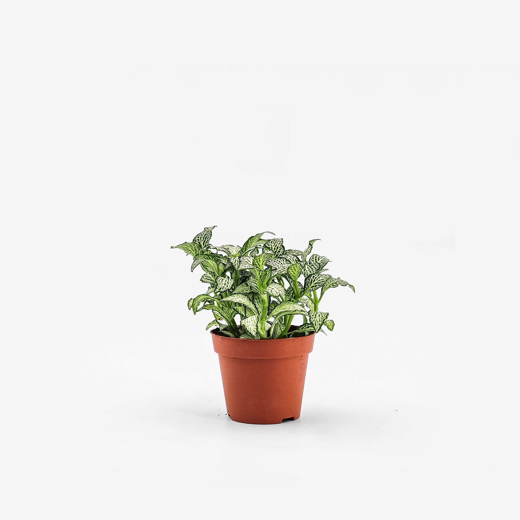 La Fittonia White Forest Flame (Fittonia ‘Mosaic White Forest Flame’) è una piccola pianta tropicale da interno, perfetta per terrarium, composizioni in vetro e mini giardini da tavolo. Le sue foglie ovali verde intenso sono attraversate da nervature bianco-crema a effetto “mosaico”, che creano un contrasto molto decorativo anche in spazi ridotti.