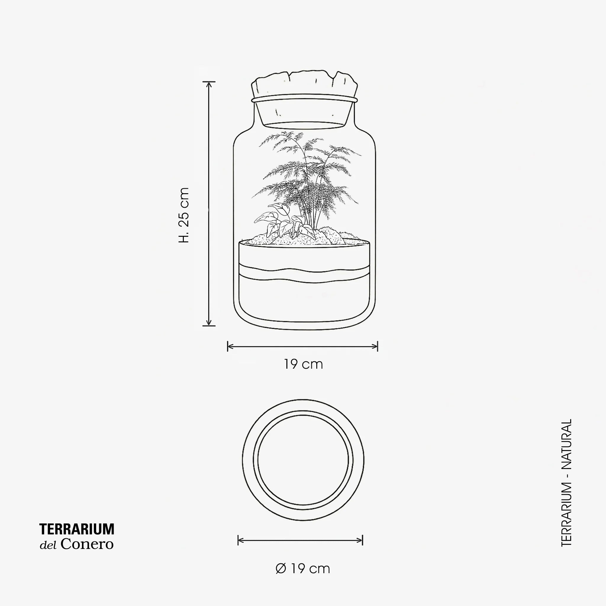 Il nostro Terrarium chiuso Natural ricrea un ecosistema dal clima tropicale umido; al suo interno possiamo trovare una pianta di Asparagus Setaceus ed una Fittonia White Tiger.