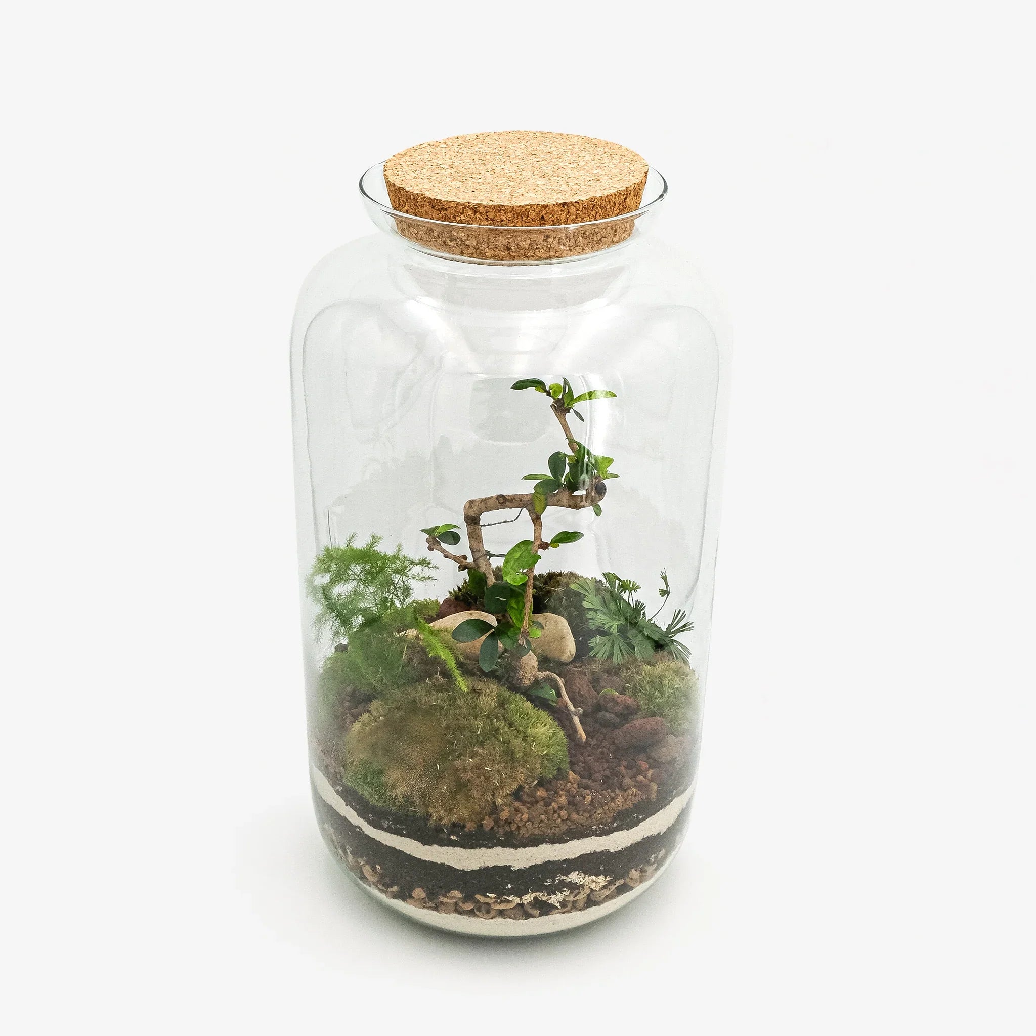 Il nostro Terrarium chiuso Fukien Tea ricrea un ecosistema dal clima equatoriale umido; al suo interno possiamo trovare un bonsai di Carmona o Fukien Tea, ed un Asparagus Setaceus Plumoso.